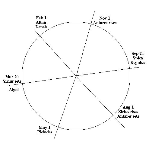 Using henges for star sightings is not unique. In North America, at the same latitude as Avebury, the Lakota built hundreds of Medicine Wheels which were aligned to watch the heliacal risings of Aldebaran, Rigel and Sirius in the summer. (9) It would seem from Egypt to Alberta that stars were sighted at dawn at their first appearance even if the month began at dusk at the first sighting of the new moon. The commonality here is first sighting after conjunction with the sun.